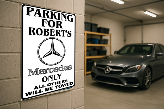 Parking For Mercedes Personalized Metal Sign 12"x18"